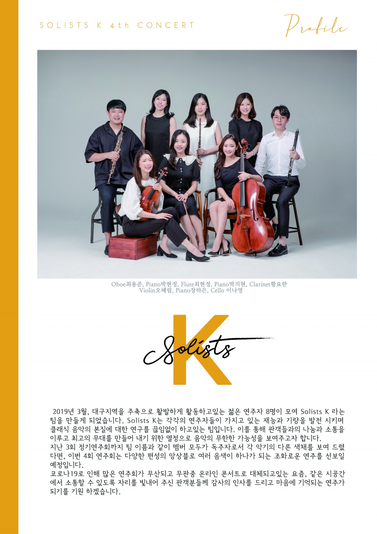 목록 솔리스츠K 4회 정기 연주회 페이지 정보 기간 20201106 ~ 20201106 시간 19:30 장소 안암홀 주최 Solists K / Le Bois,위즈 뮤직 컴퍼니 주관 계명대학교 음악공연예술대학, 계명대학교 예술대학원 및 일반대학교, 연세대학교 음대, 이화여자대학교 일반대학원, 이태리 밀라노 G.Verdi 국립음악원, 프랑스 Val Maubuee, Meudon 국립음악원, 베를린 Universitat der Kunste 입장료 문의전화 10,000 전시소개 본문